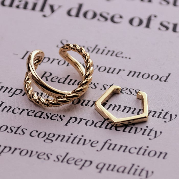 カジュアルなツイストクロス × シンプルプレートデザインのイヤーカフセット。