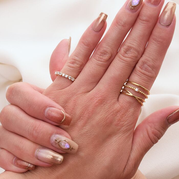さりげなく煌めくストーンをアクセントに指先をキレイに見せてくれるデザイン。