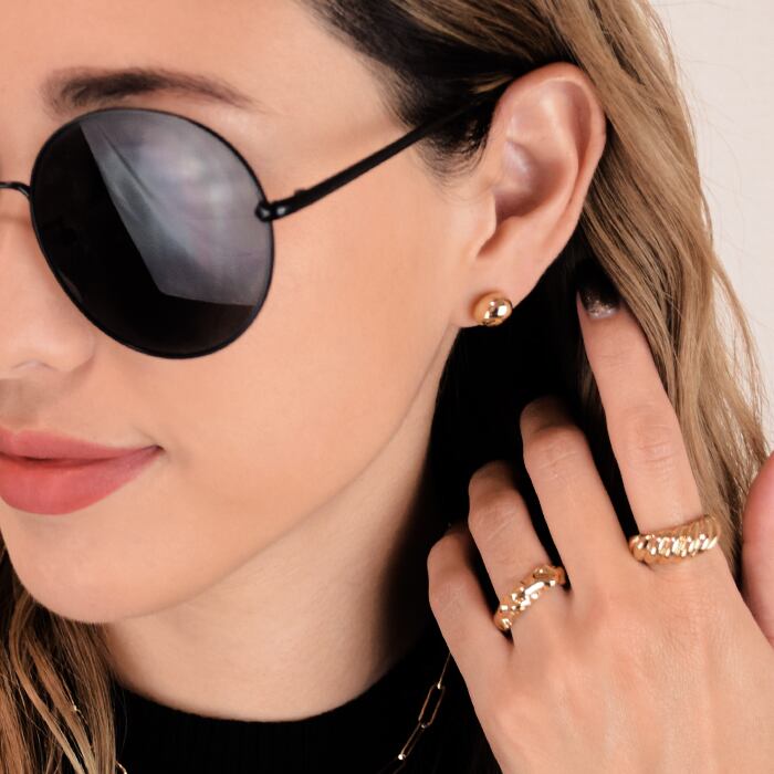 愛らしいオーバル型で耳元に沿うデザインがスタイリッシュなボールピアス。