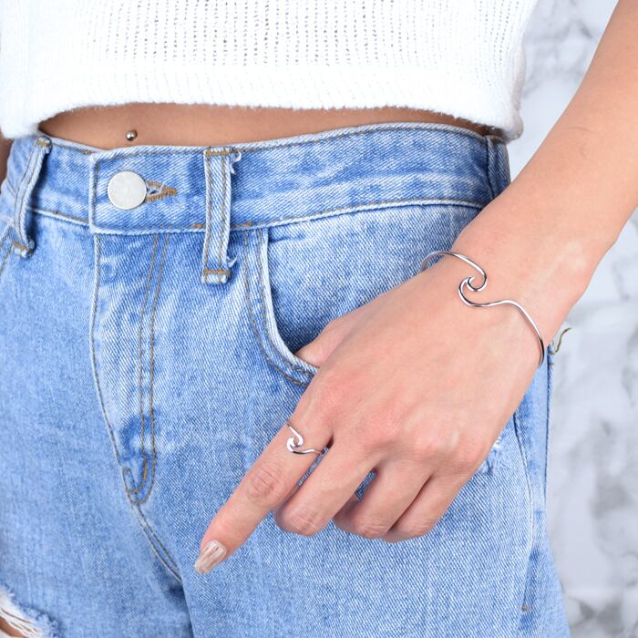 イメージの異なるGold or Silverからお選び頂く事ができ、同デザインのバングルもご用意しておりますので合わせてアクセサリーコーディネートをお楽しみいただけます