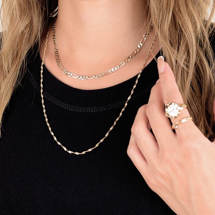 シンプルながらデザイン性のあるチェーンで首周りのアクセントとなるショートネックレス。