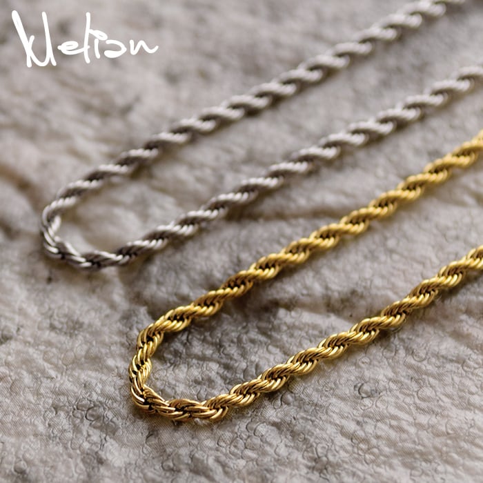 ロープ状に編み込まれたカット面の輝きが美しいスクリューチェーンネックレス。
